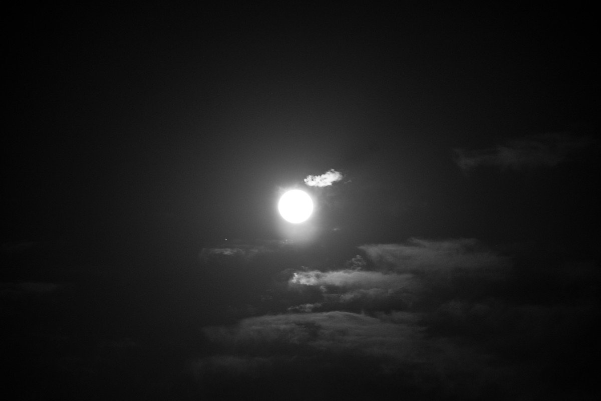 圓月當空,一夜無語